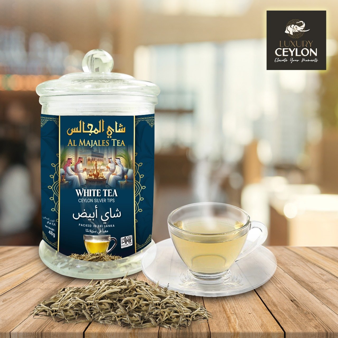 Ceylon white tea is a rare and premium variety of tea grown in Sri Lanka, widely celebrated for its delicate flavor and luxurious quality. Also referred to as “Silver Tips”, it is made from the young, unopened buds of the tea plant, which are carefully handpicked and minimally processed. This gentle handling preserves its natural sweetness and subtle floral notes, resulting in a light golden liquor when brewed.